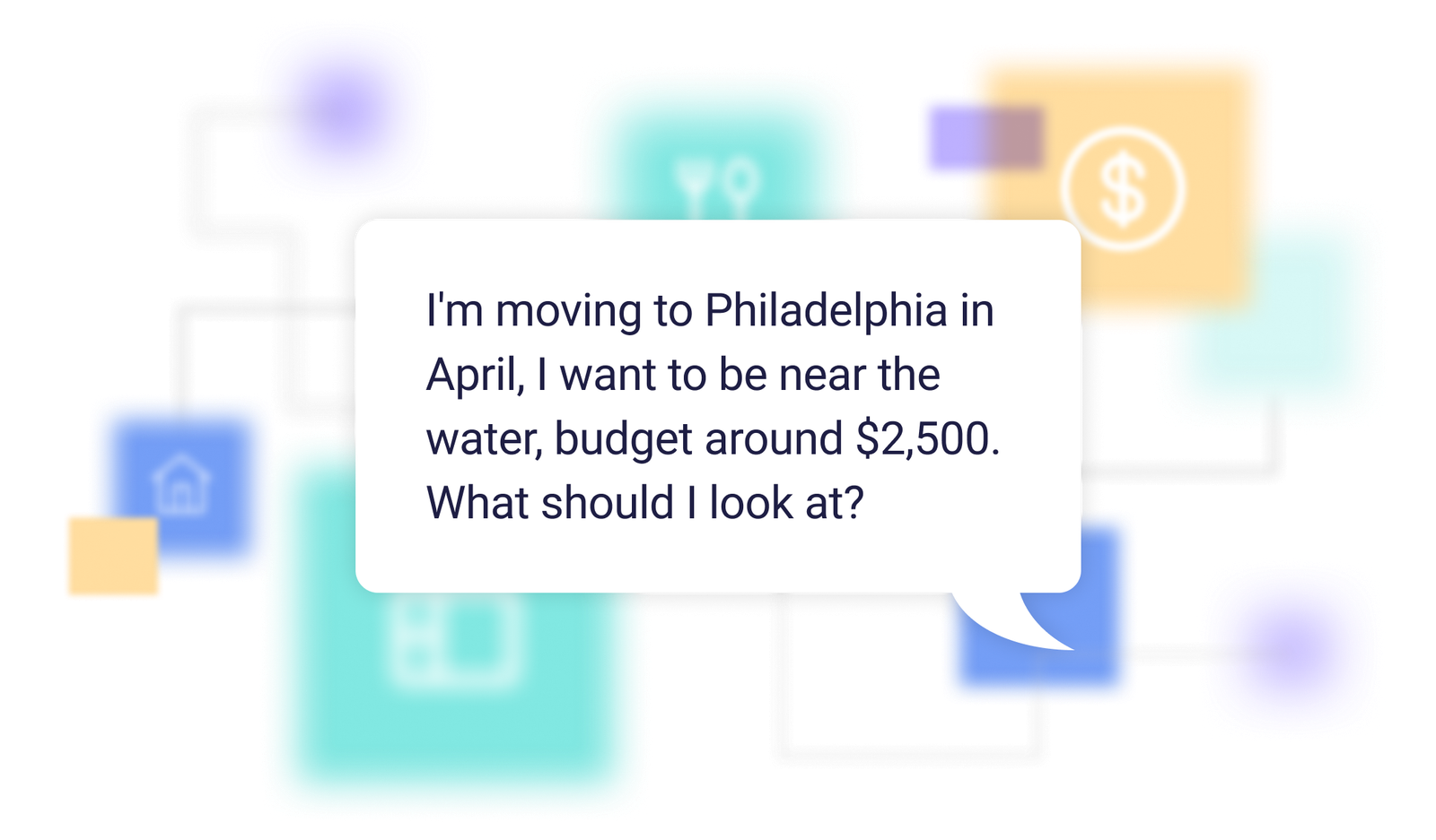 A renter doesn't type "Philadelphia 2BR apartments" into ChatGPT. They say "I'm moving to Philadelphia in April, I want to be near the water, budget around $2,500. What should I look at?" The model fills in the rest from what it already knows about them — that they have a dog, that they work downtown, that they asked about parking last week.